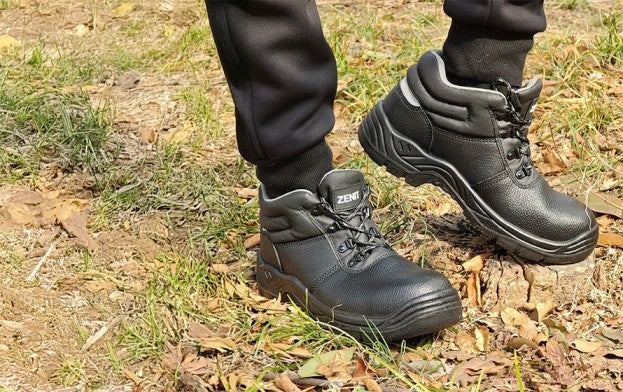 Unser Schuh für den Bau bietet robuste, rutschfeste und bequeme Sicherheit, die Schutz und Stabilität auf der Baustelle gewährleisten.